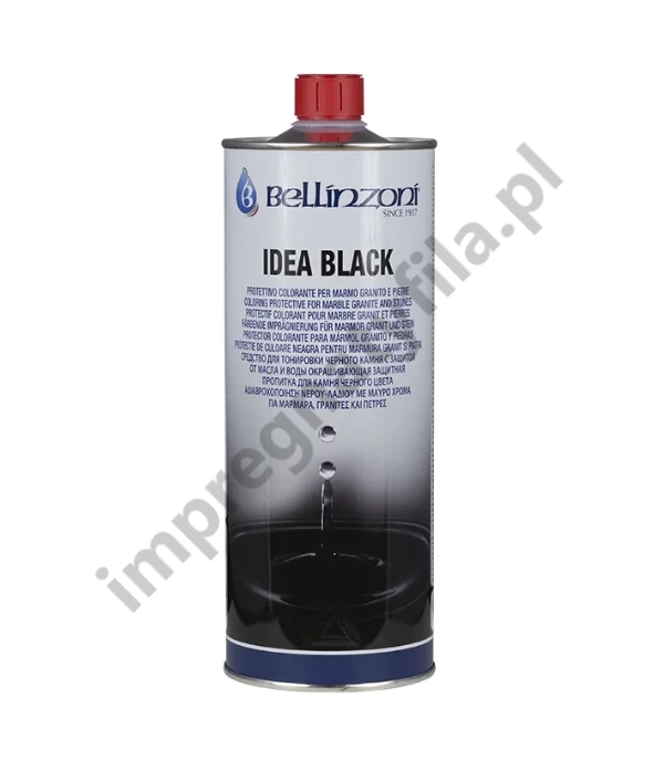 Impregnat do kamienia czarnego. Idea Black zawiera czarny pigment przez co zalecany jest do zdecydowanego pogłębiania koloru czarnych kamieni np. granitu, bazaltu itp. Szczególnie zalecany do intensyfikowania koloru kamienia polerowanego jak i naturalnego z wykończeniem surowym, płomieniowanym, szczotkowanym oraz innych, gdzie uzyskanie głębokiej czerni przy pomocy innych środków nie przynosi oczekiwanych efektów. Idea Black pogłębia kolor kamienia, pozwala "zamaskować" rysy, pewne niedoskonałości i inne defekty.