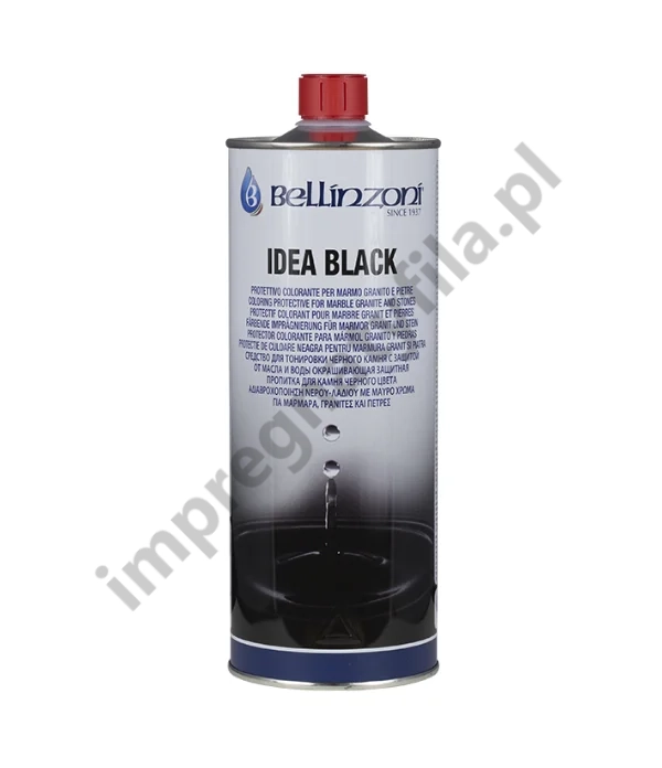 Impregnat do kamienia czarnego. Idea Black zawiera czarny pigment przez co zalecany jest do zdecydowanego pogłębiania koloru czarnych kamieni np. granitu, bazaltu itp. Szczególnie zalecany do intensyfikowania koloru kamienia polerowanego jak i naturalnego z wykończeniem surowym, płomieniowanym, szczotkowanym oraz innych, gdzie uzyskanie głębokiej czerni przy pomocy innych środków nie przynosi oczekiwanych efektów. Idea Black pogłębia kolor kamienia, pozwala "zamaskować" rysy, pewne niedoskonałości i inne defekty.